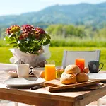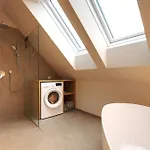 С террасы открывается вид на горы. В ванной комнате также есть ванна, душевая кабина и отдельный туалет. Для удобства гостей предусмотрены фен и полотенца.